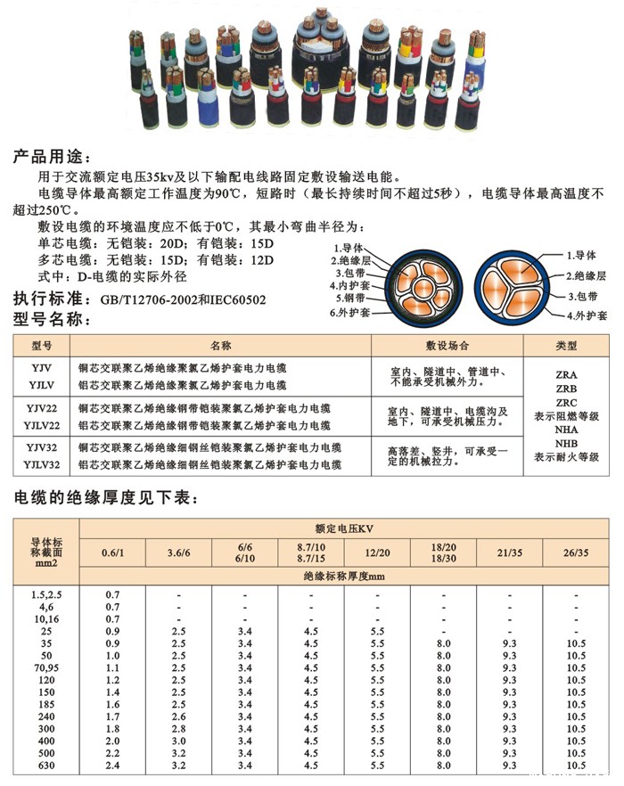 额定电压35KV及以下交联聚乙烯J缘电力电缆