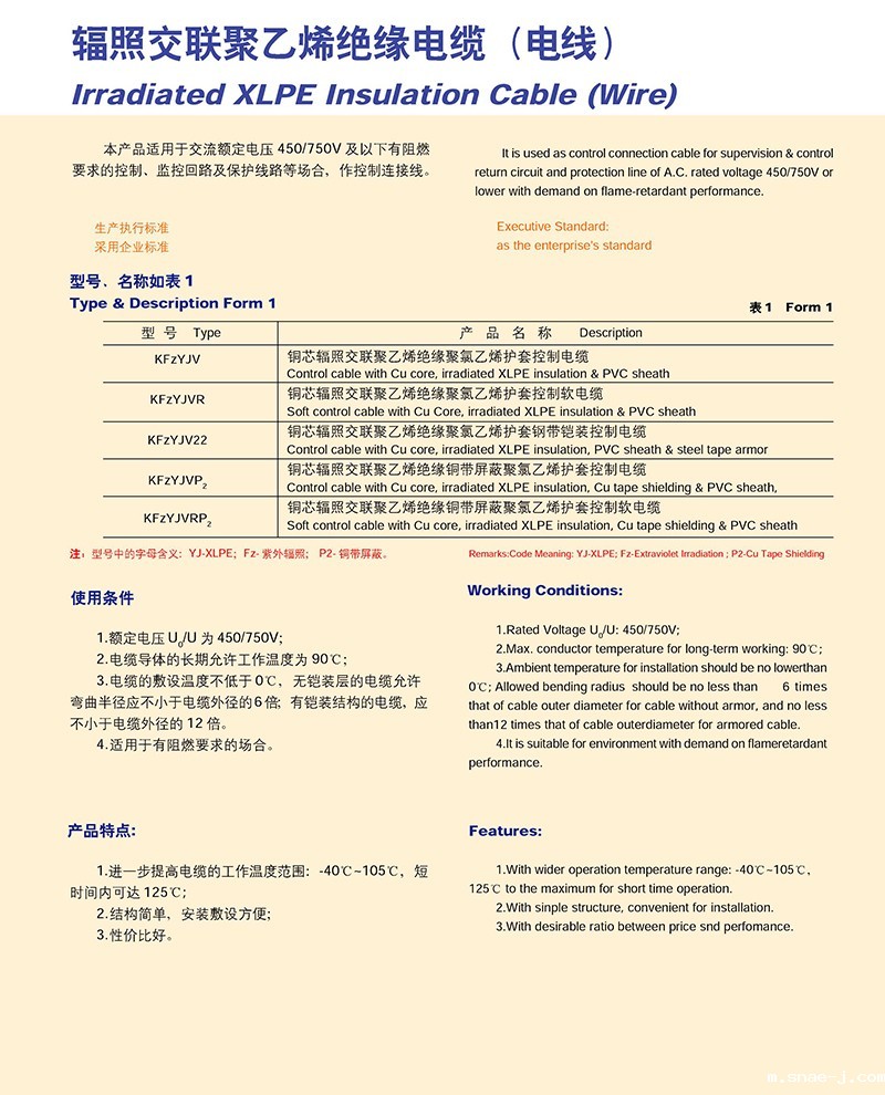 辐照交联聚乙烯J缘电缆(电线)